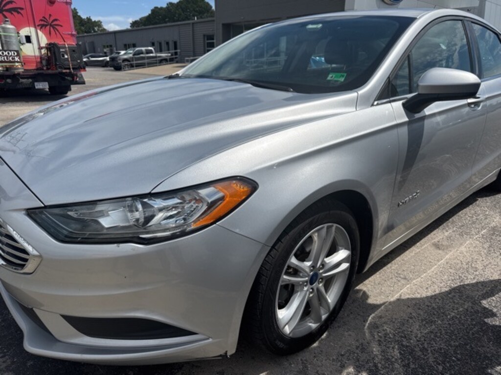 JUST ARRIVED. PENDING INSPECTION. Silver 2018 Ford Fusion Hybrid SE FWD E-CVT Automatic I4 Hybrid We are currently offering Vehicle Purchase Home Delivery by appointment. Please contact for details., I4 Hybrid, 4-Wheel Disc Brakes, 9 Speakers, ABS brakes, Air Conditioning, Alloy wheels, AM/FM radio: SiriusXM, Automatic temperature control, Brake assist, Bumpers: body-color, CD player, Cloth Front Bucket Seats, Compass, Delay-off headlights, Driver door bin, Driver vanity mirror, Dual front impact airbags, Dual front side impact airbags, Electronic Stability Control, Emergency communication system: 911 Assist, Exterior Parking Camera Rear, Four wheel independent suspension, Front anti-roll bar, Front Bucket Seats, Front Center Armrest, Front dual zone A/C, Front reading lights, Fully automatic headlights, Illuminated entry, Knee airbag, Low tire pressure warning, Occupant sensing airbag, Outside temperature display, Overhead airbag, Overhead console, Panic alarm, Passenger door bin, Passenger vanity mirror, Power door mirrors, Power driver seat, Power passenger seat, Power steering, Power windows, Radio data system, Radio: AM/FM Stereo w/MP3/Single-CD Player, Rear anti-roll bar, Rear reading lights, Rear seat center armrest, Rear window defroster, Remote keyless entry, Security system, Speed control, Speed-sensing steering, Speed-Sensitive Wipers, Split folding rear seat, Steering wheel mounted audio controls, SYNC Communications & Entertainment System, Tachometer, Telescoping steering wheel, Tilt steering wheel, Traction control, Trip computer, Variably intermittent wipers, Wheels: 17" Sparkle Silver Painted Aluminum, I4 Hybrid.