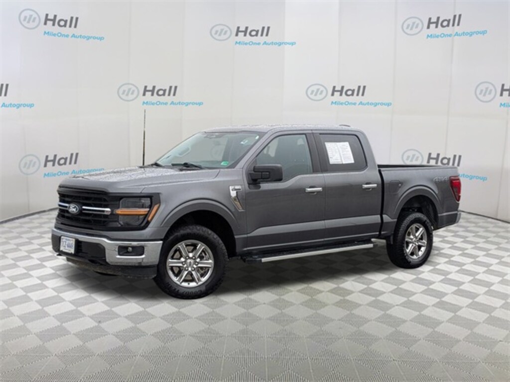 CARFAX One-Owner. Clean CARFAX. Gray 2025 Ford F-150 XLT 4WD 10-Speed Automatic 5.0L V8 We are currently offering Vehicle Purchase Home Delivery by appointment. Please contact for details., 4WD, 3.31 Axle Ratio, 4-Wheel Disc Brakes, 6 Speakers, ABS brakes, Air Conditioning, Alloy wheels, AM/FM radio: SiriusXM with 360L, Auto High-beam Headlights, Brake assist, Bumpers: chrome, Chrome wheels, Cloth 40/20/40 Front Seat, Compass, Delay-off headlights, Driver door bin, Driver vanity mirror, Dual front impact airbags, Dual front side impact airbags, Electronic Stability Control, Emergency communication system: SYNC 4 911 Assist, Front anti-roll bar, Front Center Armrest, Front fog lights, Front reading lights, Front wheel independent suspension, Fully automatic headlights, Heated door mirrors, Illuminated entry, Low tire pressure warning, Occupant sensing airbag, Outside temperature display, Overhead airbag, Overhead console, Panic alarm, Passenger door bin, Passenger vanity mirror, Power door mirrors, Power steering, Power windows, Radio data system, Radio: AM/FM Stereo w/SiriusXM 360L, Rear Parking Sensors, Rear reading lights, Rear step bumper, Rear window defroster, Remote keyless entry, Security system, Speed control, Split folding rear seat, Steering wheel mounted audio controls, SYNC 4 w/Enhanced Voice Recognition, Tachometer, Telescoping steering wheel, Tilt steering wheel, Traction control, Trip computer, Variably intermittent wipers, Voltmeter, Wheels: 18" Chrome-Like PVD, 4WD.