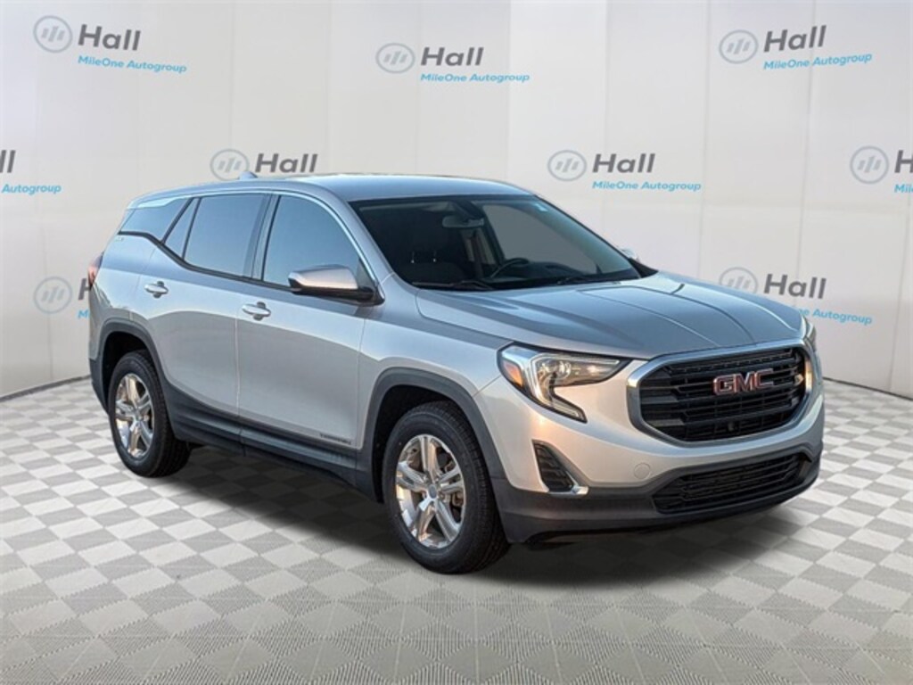 Clean CARFAX. Quicksilver Metallic 2018 GMC Terrain SLE FWD 9-Speed Automatic 1.5L DOHC We are currently offering Vehicle Purchase Home Delivery by appointment. Please contact for details., 2 USB Data Ports w/Auxiliary Input Jack, 3.47 Axle Ratio, 4-Way Manual Driver's Seat, 4-Way Manual Front Passenger Seat, 4-Wheel Disc Brakes, 6 Speakers, 6-Speaker Audio System Feature, ABS brakes, Air Conditioning, All-Weather Cargo Mat (LPO), All-Weather Floor Mats, Alloy wheels, AM/FM radio, Apple CarPlay/Android Auto, Auto-dimming Rear-View mirror, Bluetooth® For Phone, Brake assist, Bumpers: body-color, Compass, Delay-off headlights, Driver door bin, Driver vanity mirror, Dual front impact airbags, Dual front side impact airbags, Electronic Stability Control, Emergency communication system: OnStar Guidance, Exterior Parking Camera Rear, Four wheel independent suspension, Front anti-roll bar, Front Bucket Seats, Front Center Armrest, Front reading lights, Fully automatic headlights, Heated door mirrors, High-Intensity Discharge Headlights, Illuminated entry, Interior Protection Package (LPO), Low tire pressure warning, Occupant sensing airbag, Outside temperature display, Overhead airbag, Overhead console, Panic alarm, Passenger door bin, Passenger vanity mirror, Power door mirrors, Power steering, Power windows, Preferred Equipment Group 3SA, Premium Cloth Seat Trim, Radio data system, Radio: GMC Infotainment Audio System w/7" Display, Rear anti-roll bar, Rear seat center armrest, Rear window defroster, Rear window wiper, Remote keyless entry, Security system, Speed control, Speed-sensing steering, Split folding rear seat, Spoiler, Steering wheel mounted audio controls, Tachometer, Telescoping steering wheel, Tilt steering wheel, Traction control, Trip computer, Variably intermittent wipers, Wheels: 17" x 7" Silver Painted Aluminum.