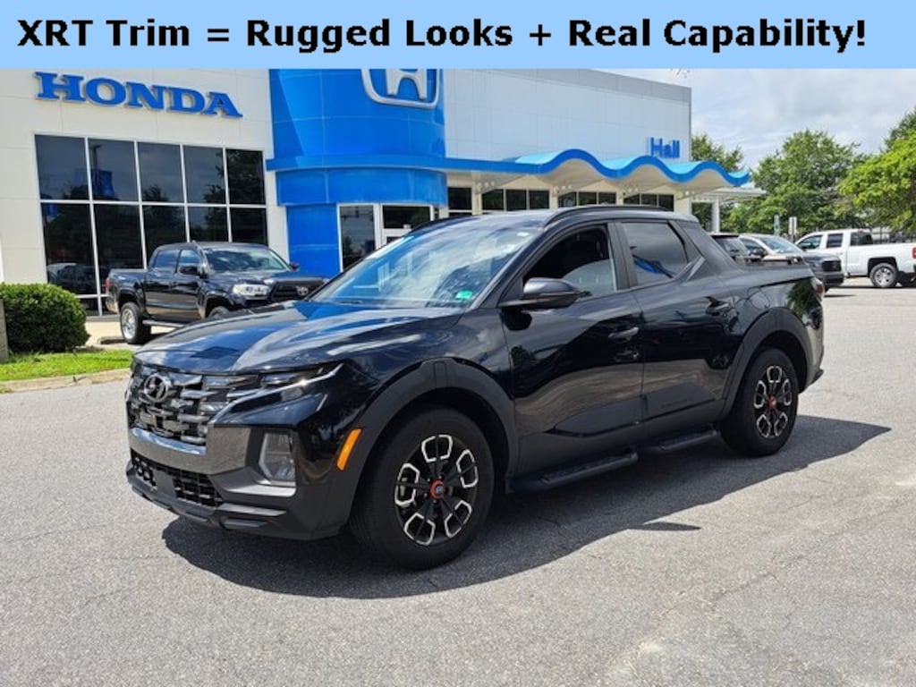CARFAX One-Owner. Clean CARFAX. Phantom Black 2024 Hyundai Santa Cruz XRT AWD Shiftronic 2.5L I4 We are currently offering Vehicle Purchase Home Delivery by appointment. Please contact for details., 18" x 7.5J Alloy Wheels, 3.316 Axle Ratio, 4-Wheel Disc Brakes, ABS brakes, Air Conditioning, Alloy wheels, AM/FM radio: SiriusXM, Apple CarPlay & Android Auto, Auto High-beam Headlights, Auto-dimming Rear-View mirror, Automatic temperature control, Bed Cargo Net, Bodyside moldings, Brake assist, Bumpers: body-color, Delay-off headlights, Dual front impact airbags, Electronic Stability Control, Emergency communication system: Bluelink+, Envelope Cargo Net, Exterior Parking Camera Rear, Four wheel independent suspension, Front anti-roll bar, Front dual zone A/C, Fully automatic headlights, H-Tex Leatherette Seating Surfaces, Heated Front Bucket Seats, Heated front seats, Leather Shift Knob, Leather steering wheel, Low tire pressure warning, Navigation System, Occupant sensing airbag, Option Group 01, Outside temperature display, Overhead console, Passenger door bin, Power door mirrors, Power driver seat, Power moonroof, Power steering, Power windows, Radio data system, Radio: AM/FM/HD Audio System, Rear step bumper, Rear window defroster, Remote keyless entry, Sliding Bed Divider, Speed control, Speed-sensing steering, Steering wheel mounted audio controls, Traction control, Turn signal indicator mirrors, Variably intermittent wipers.
