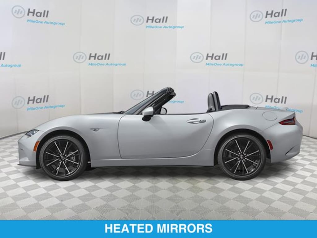 JUST ARRIVED. PENDING INSPECTION. CARFAX One-Owner. Clean CARFAX. Aero Gray Metallic 2025 Mazda MX-5 Miata Grand Touring RWD 6-Speed Manual 2.0L 4-Cylinder DOHC 16V We are currently offering Vehicle Purchase Home Delivery by appointment. Please contact for details., 17" x 7" aluminum alloy wheels with black metallic finish, AM/FM radio: SiriusXM, AppLink/Apple CarPlay and Android Auto, Auto-dimming door mirrors, Auto-dimming Rear-View mirror, Automatic temperature control, bose audio system with audiopilot, Brake assist, Convertible roof lining, Convertible roof wind blocker, Dual front impact airbags, Exterior Parking Camera Rear, Front anti-roll bar, Garage door transmitter: HomeLink, Glass rear window, heated front bucket seats, Heated front seats, leather upholstery, Low tire pressure warning, MAZDA CONNECT Infotainment system, Navigation System, Power windows, Remote keyless entry.