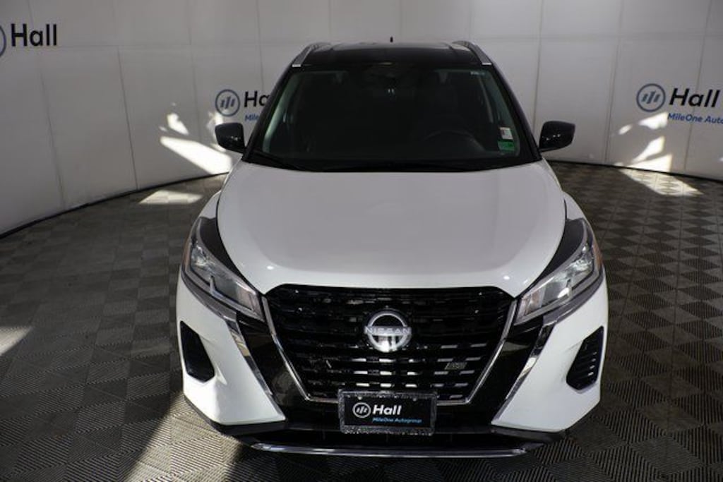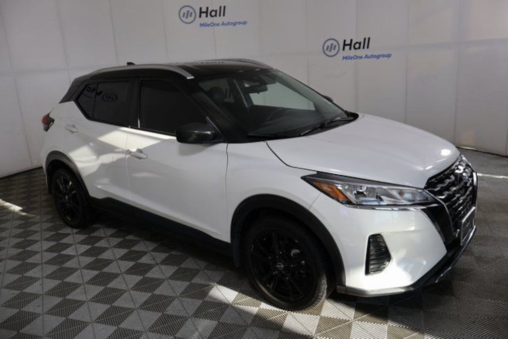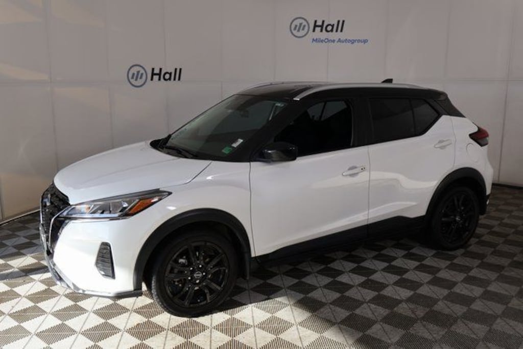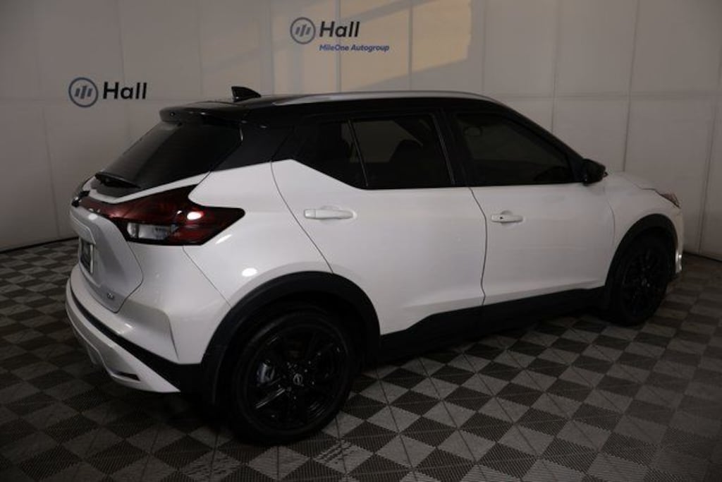 Clean CARFAX. Aspen White Tricoat/Super Black 2023 Nissan Kicks SV FWD CVT with Xtronic 1.6L 4-Cylinder DOHC 16V