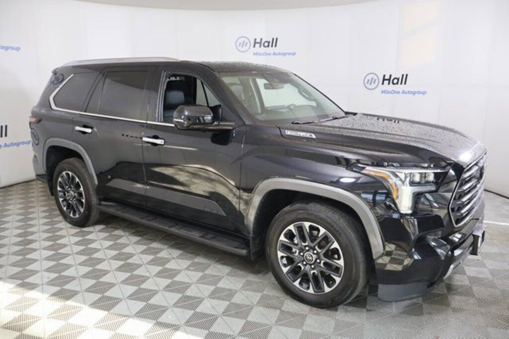 Midnight Black Metallic 2024 Toyota Sequoia Limited 4WD 10-Speed Automatic V6 Hybrid V6 Hybrid, 10-Speed Automatic, 4WD, ABS brakes, Active Cruise Control, Alloy wheels, Electronic Stability Control, Front dual zone A/C, Heated & Ventilated Front Seats, Heated door mirrors, Heated front seats, Illuminated entry, Low tire pressure warning, Navigation System, Power Liftgate, Power moonroof, Remote keyless entry, Traction control.
