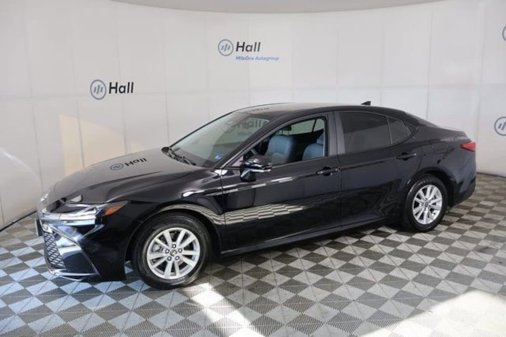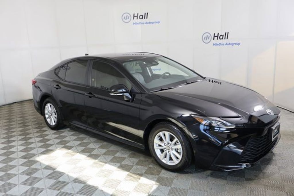 Midnight Black Metallic 2025 Toyota Camry LE FWD eCVT 2.5L 4-Cylinder 16V DOHC 2.5L 4-Cylinder 16V DOHC, Boulder w/Fabric Seat Trim, ABS brakes, Active Cruise Control, Alloy wheels, Electronic Stability Control, Front dual zone A/C, Heated door mirrors, Illuminated entry, Low tire pressure warning, Remote keyless entry, Traction control.